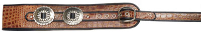 Bass BabyMade by hand in our shop in NYC. 4" wide leather strap. Leather lining with complete leather body and leather binding. Fully adjustable tail to 55" long (60" length available). Conchos or rings available for back (see image below). See more western styles on our Studded & Western page. |