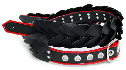 Coney Island1.5" wide supple scrumptous leather creation. Long, sleek 100% leather lined body, accented with leather scales, fully adjustable tail to 60" long. Nickel buckle. Black or red binding. |