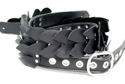 Hand Laced2" wide strap with front and back leather body adorned with hand lacing. |