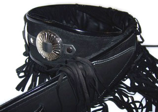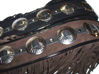 full leather body with woven Choice of brown or black 6" suede fringe. |
