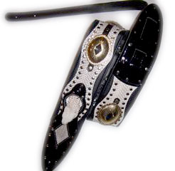 Antique ConchosMade by hand in our shop in NYC. 3" wide, full leather body, snake skin or leather with antique conchos, leather tip.Available in black leather, white leather, black snake and white snake. |