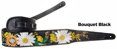 The Bouquet3" wide leather strap with sunflower bouquet embroidered appliques |