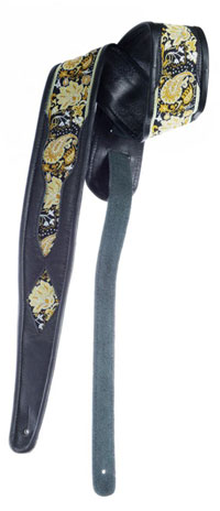 Paisley DaveMade by hand in our shop in NYC. 2.5" wide lush, metallic paisley brocade straps. Leather lining with complete leather body and leather binding. Fully adjustable tail to 55"