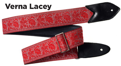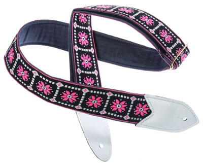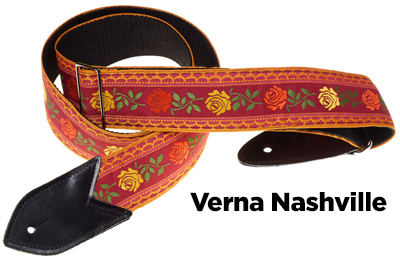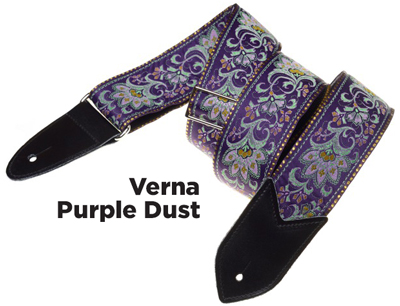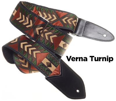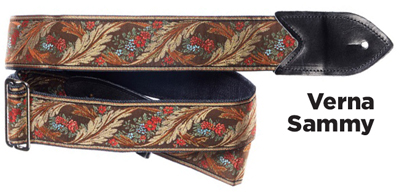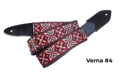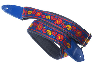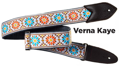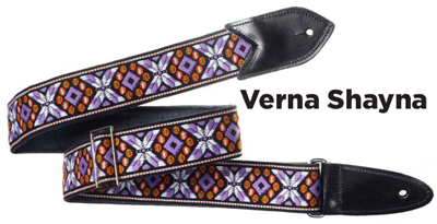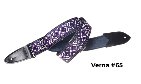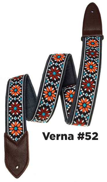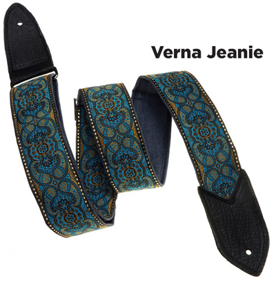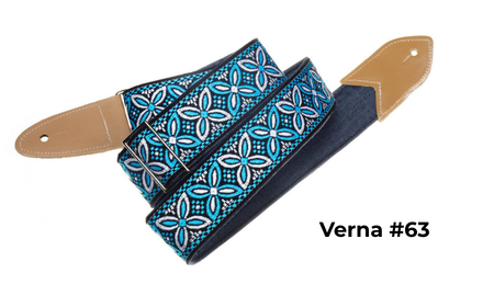 The Verna StrapsMade by hand in our shop in NYC. 2" wide denim body strap with metalbuckles and cecelia ends. Can be done in any of the vintage hootnanny color styles or end colors shown on the hootnanny page. |